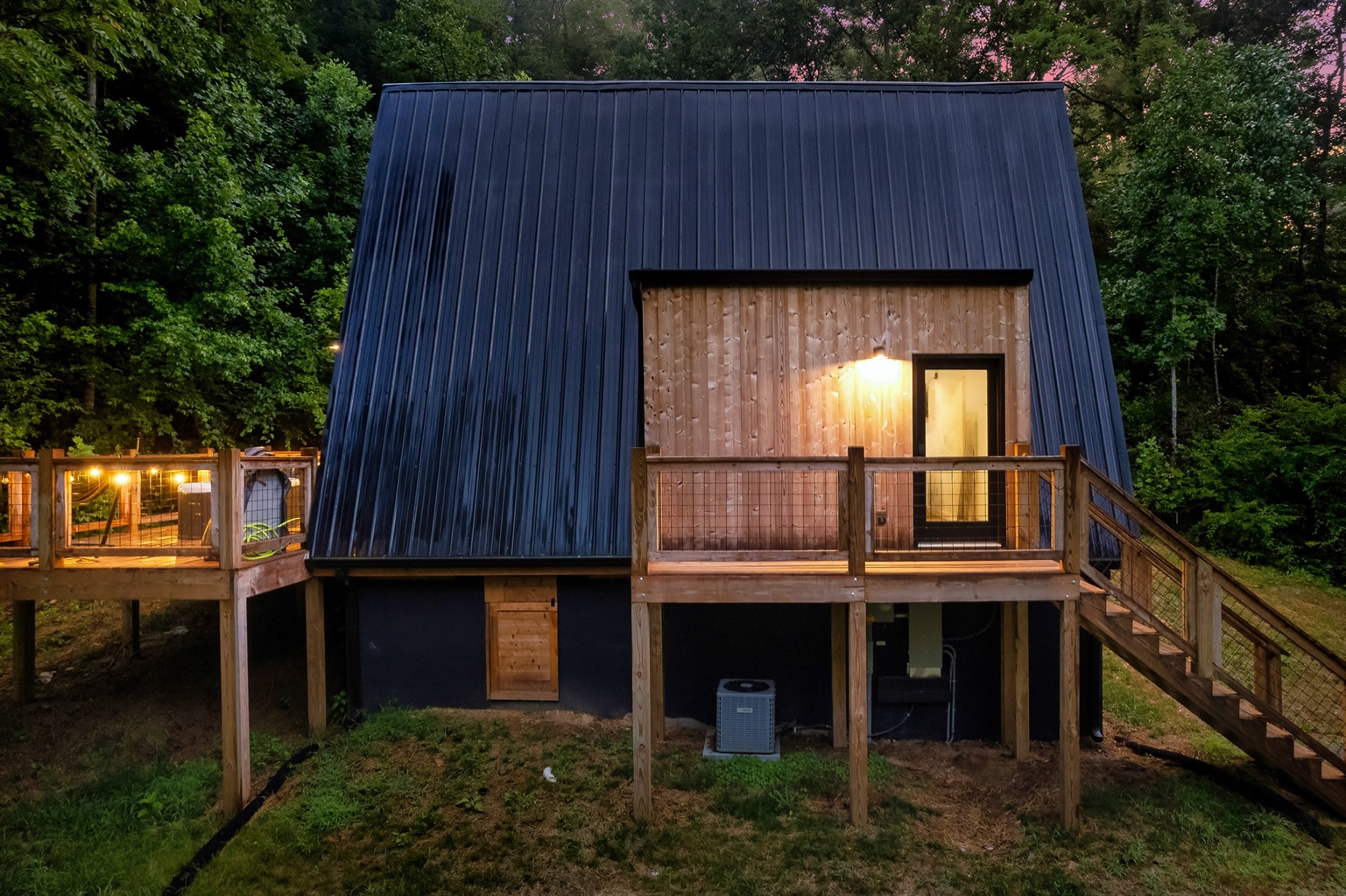 This little A-frame cabin is a tiny home and is tucked away in Sevier Country (Sevierville) in the Smoky Mountains in Sevier County, Tennessee. This hidden gem allows guests to get away from it all, slow down, relax, and reconnect with each other. This cabin provides visitors with the beauty and calm of the Great Smoky Mountains, while also having quick access to the numerous regional attractions.